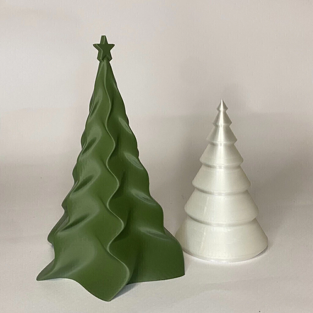 Árvores decorativas de Natal em design moderno e minimalista, perfeita para compor a decoração de fim de ano com elegância e charme. Produzida em PLA (material sustentável e biodegradável), possui acabamento acetinado e formas orgânicas que trazem leveza ao ambiente. Altura: árvore 1 - 13cm, árvore 2 - 9 cm Ideal para enfeitar aparadores, mesas, estantes e composições natalinas sofisticadas. Combine diferentes modelos e cores para criar um cenário festivo contemporâneo e acolhedor.